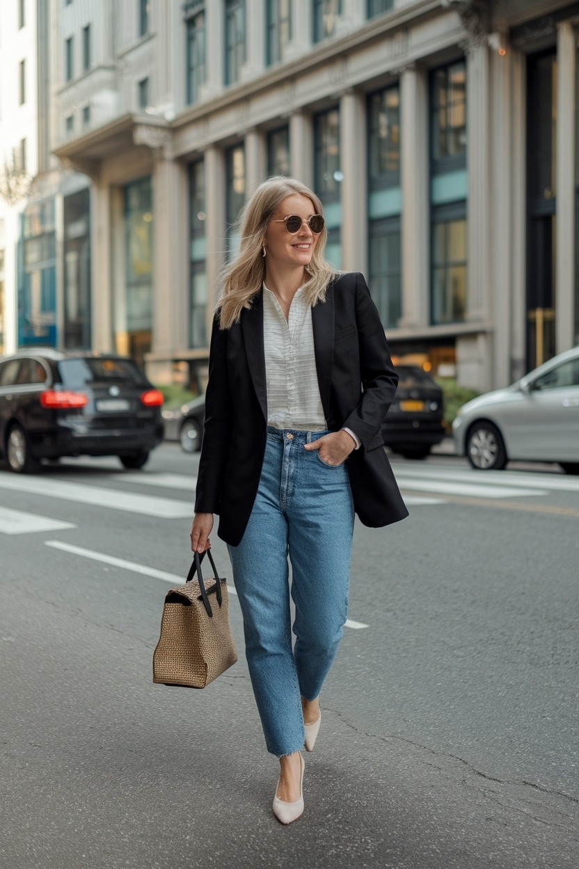 - Chic Blazer & Distressed Jeans: Layer a tailored blazer over a simple tee for a polished yet relaxed vibe.