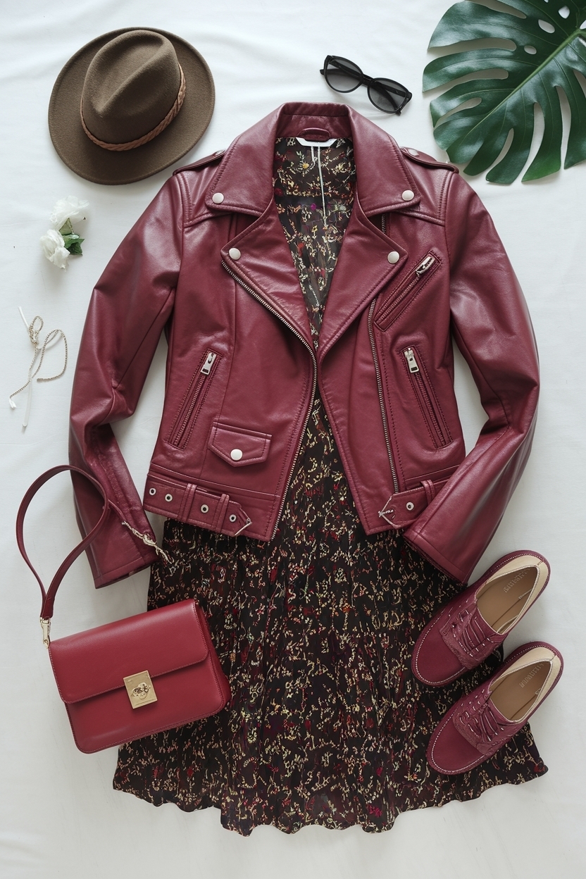 Cherry Red Leather Jacket Outfit for a Bold Look