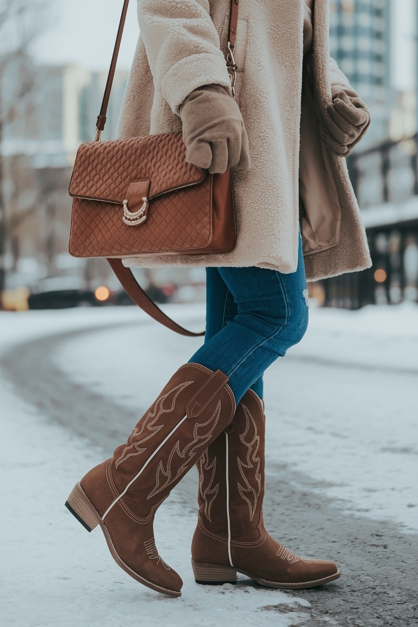 “Cowboy boots are the perfect way to elevate your winter outfits while keeping that cozy vibe. They add an unexpected twist that’s both stylish and functional.”