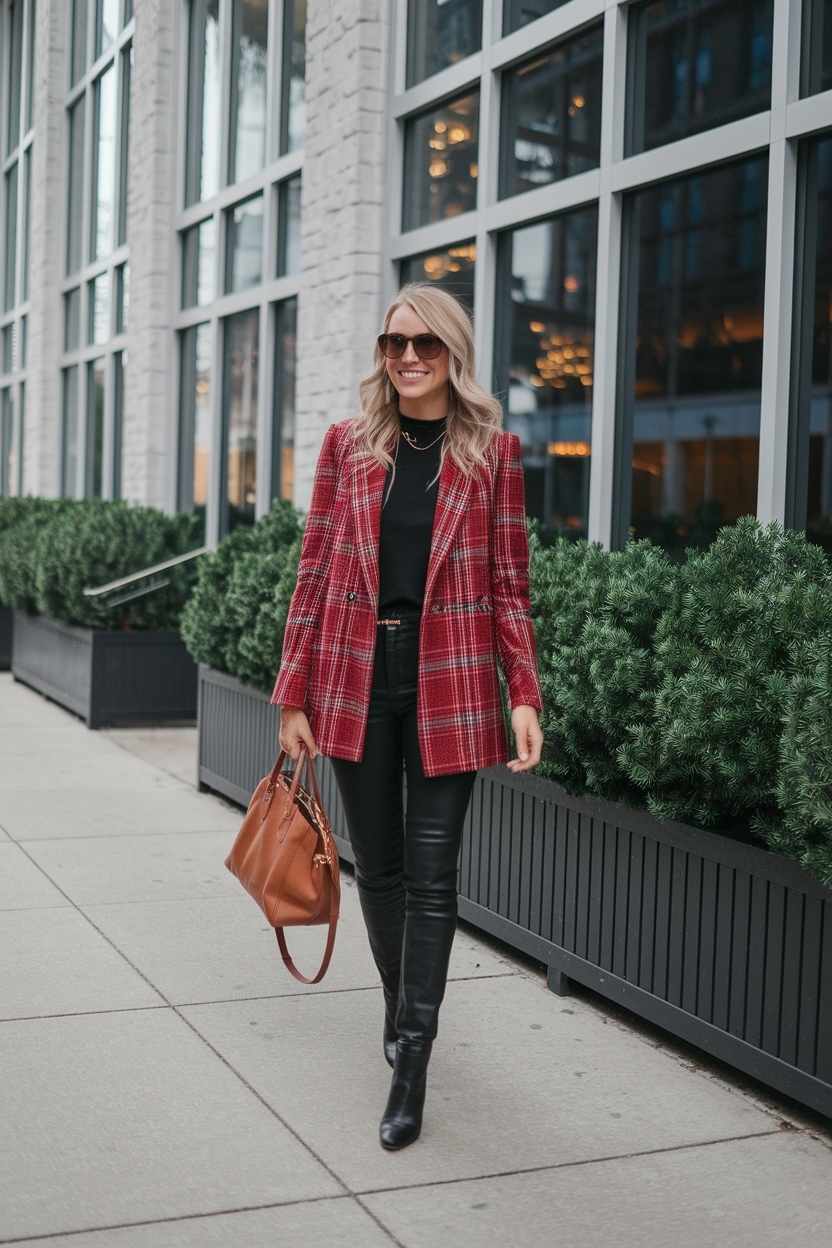 1. Blazer: Opt for a tailored blazer in a rich color like deep green or burgundy to add a seasonal touch.