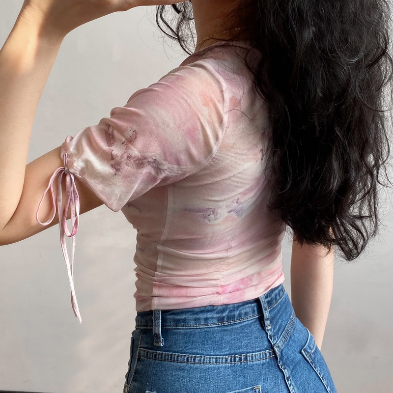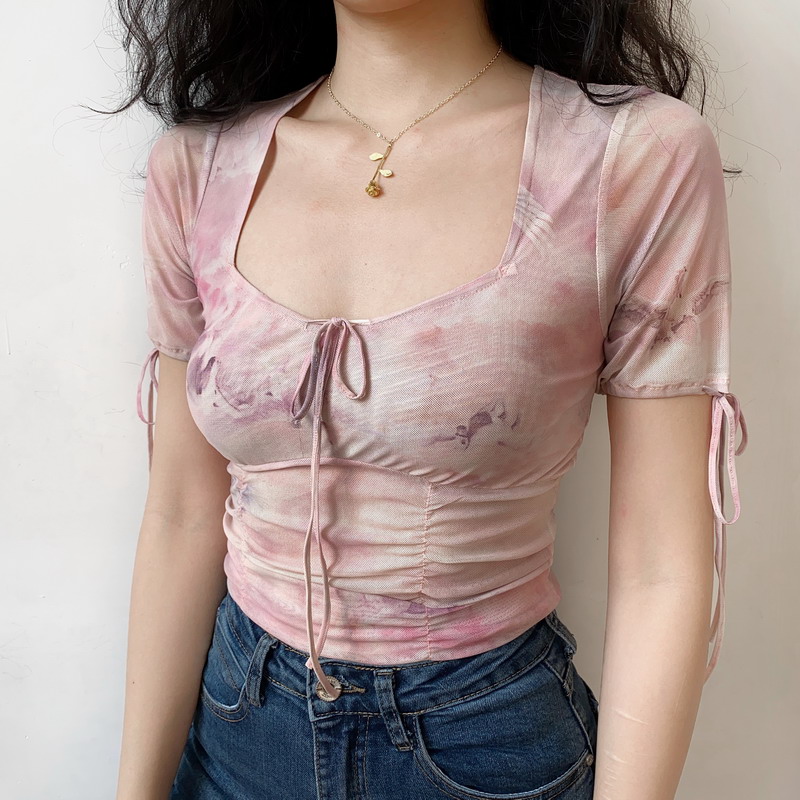 Ballet Style Dreamy Printed Mesh Sheer Bow Pleated Short Sl – Dream Clothes