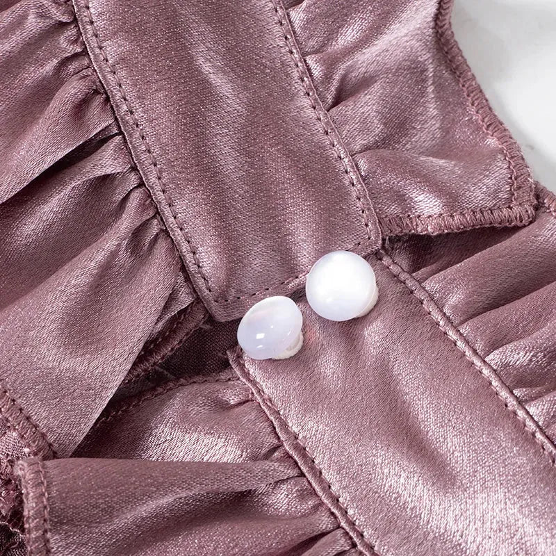 All eyes on you in this dreamy halter top. Crafted with a metallic sheen, front keyhole cutout, and cascading ruffles, it’s giving major romantic drama with a Y2K twist.
