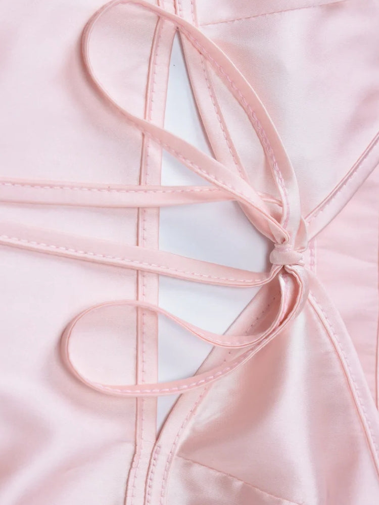 Slip into this sleek satin maxi dress that redefines elegance with its chic cut-out details and tied straps. The soft satin fabric drapes beautifully, perfect for formal evenings or date nights.