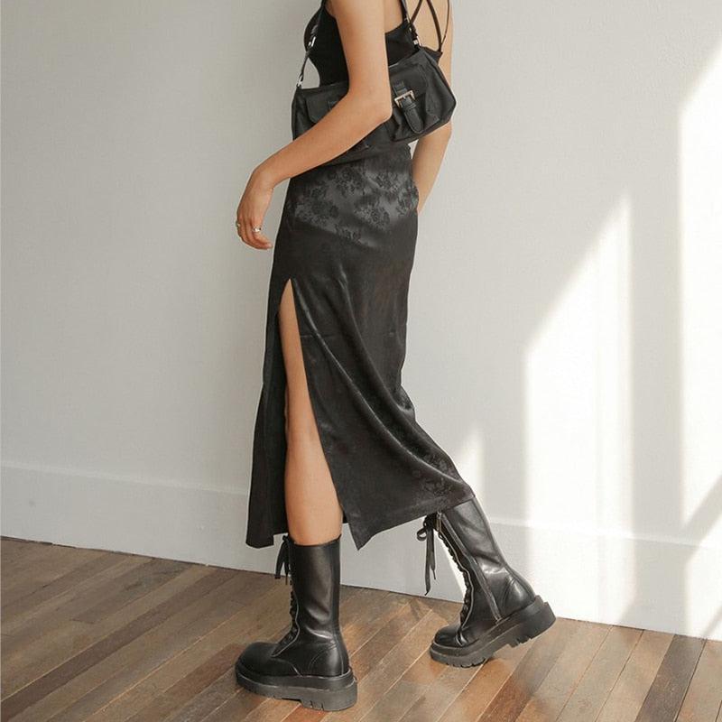 Dark Floral Side Slit Midi Skirt High-quality product featuring spring outfit, outfit inspo, pretty outfits and more. Modern design that fits the latest trends. Premium materials ensure durability and comfort. Order now for special offers! Product designed with attention to every detail. Suitable for all occasions and personal styles.