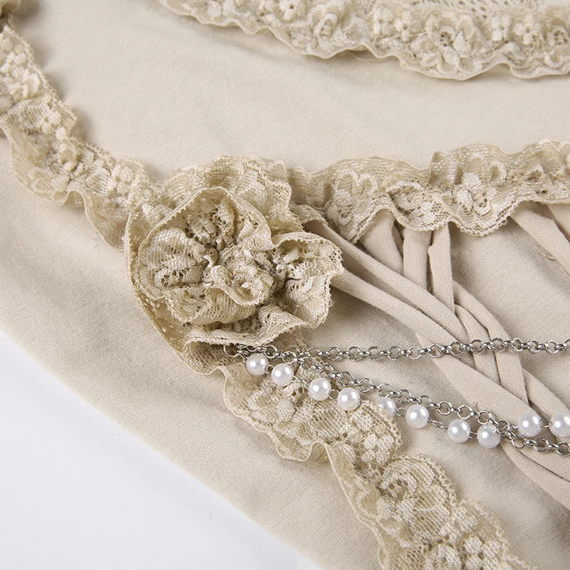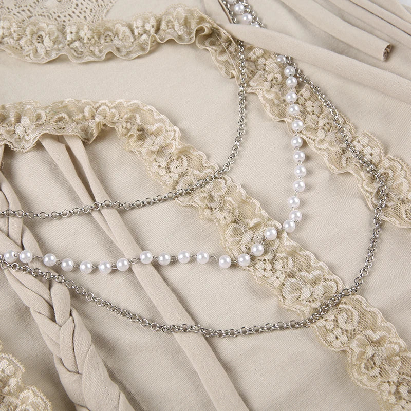 A layered cami top with lace accents, braided details, and a satin-like base that blends fairy and grunge aesthetics. The textured design gives it a DIY-inspired feel, making it perfect for pairing with cargos, mini skirts, or layering in edgy fits.