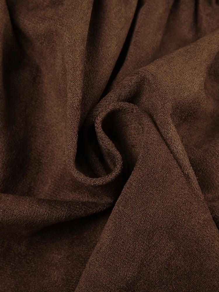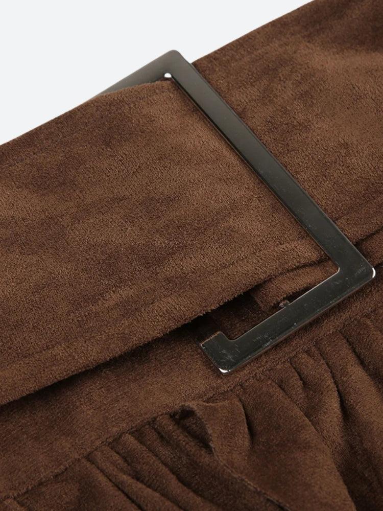 Soft, earthy, and straight out of a cottagecore daydream. This fairycore-inspired mini skirt is crafted from faux suede and features layered, handkerchief-style panels that flow with every step. The wide waistband and statement buckle belt create a flattering silhouette, while the asymmetrical hem adds that whimsical touch.