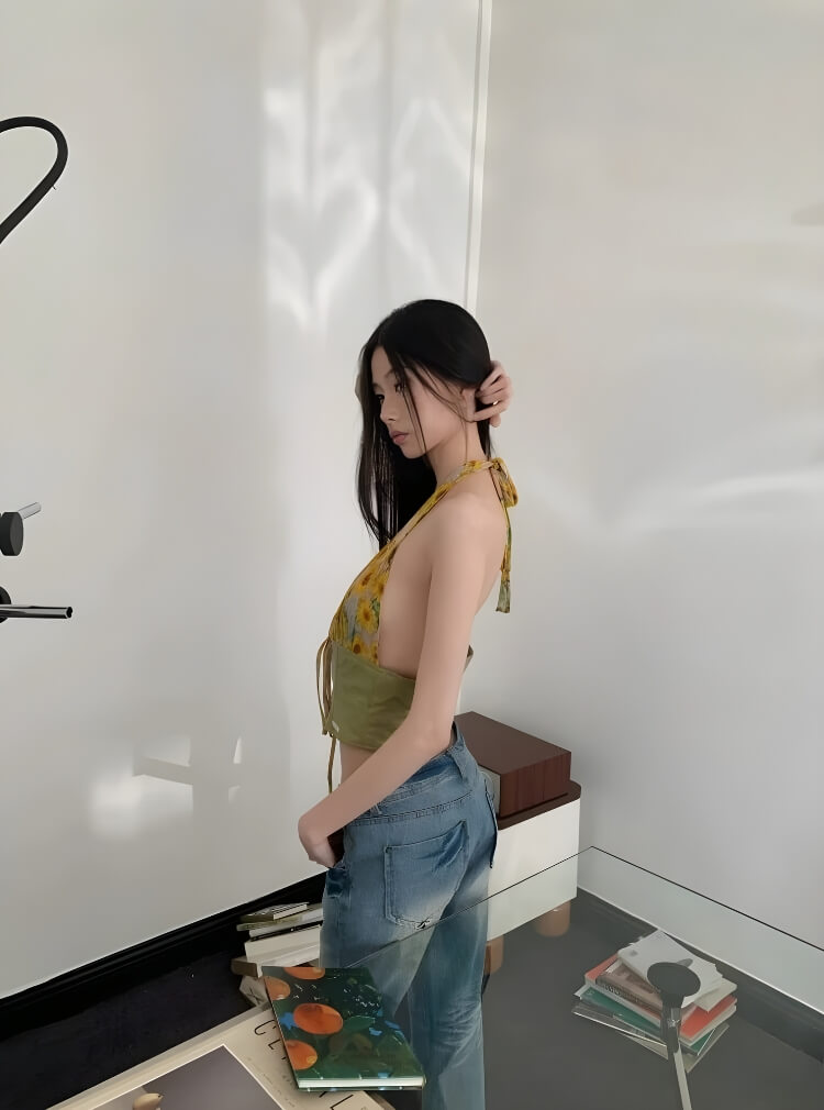 A bold floral halter with a lace-up front that ties at the waist for a flattering fit. The open-back design and cropped cut bring a retro Y2K vibe, while the soft fabric keeps it casual and easy to pair with jeans or skirts. A statement top for summer streetwear and party looks.