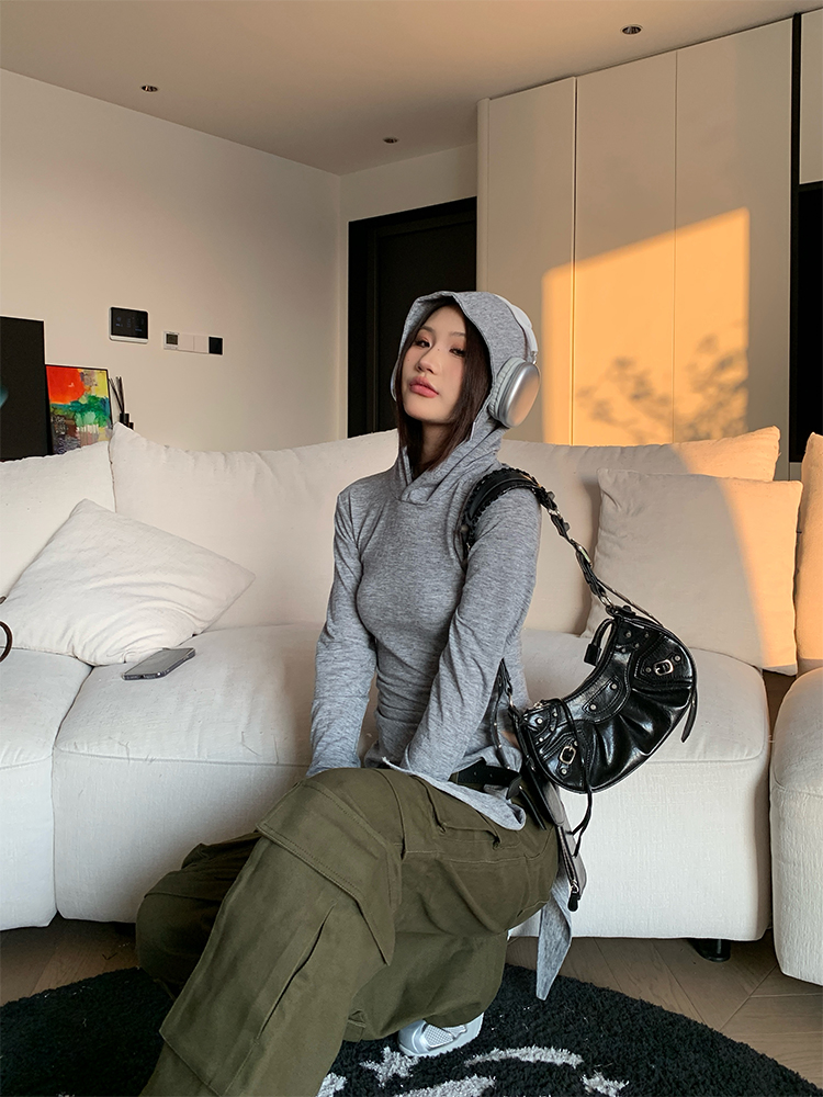 Spring Outfit: Women’s Slim Fit Hooded Long Sleeve T-shirt in Vintage Style