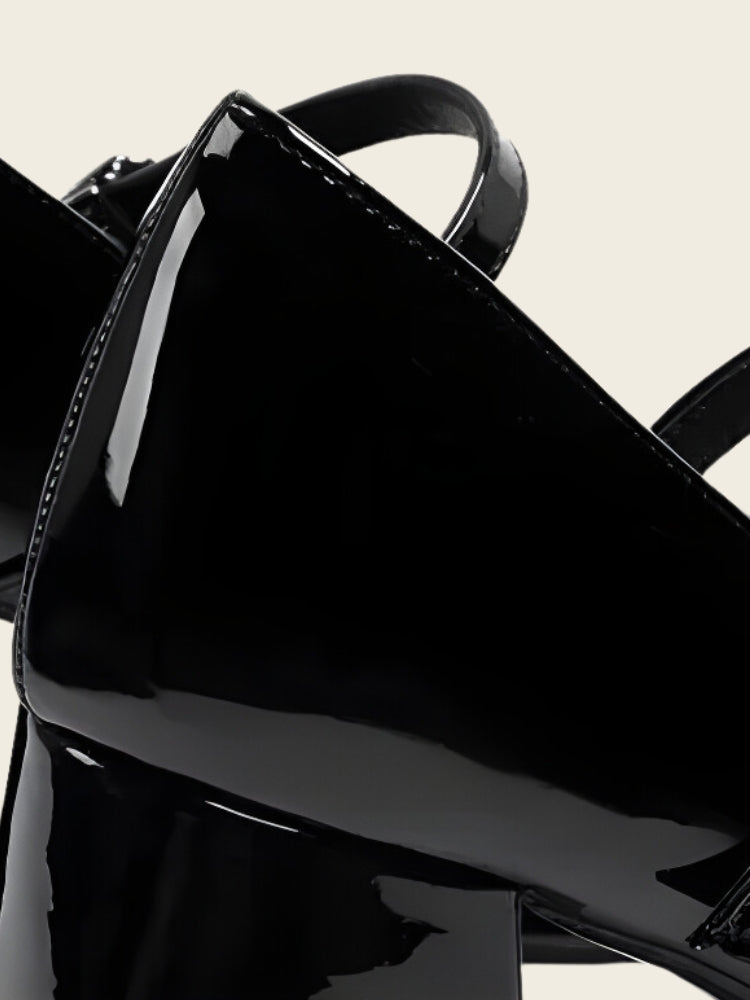These sleek Mary Jane high heels combine a classic strap design with a contemporary block heel. The glossy finish adds a sophisticated touch, making them ideal for casual and formal outfits.