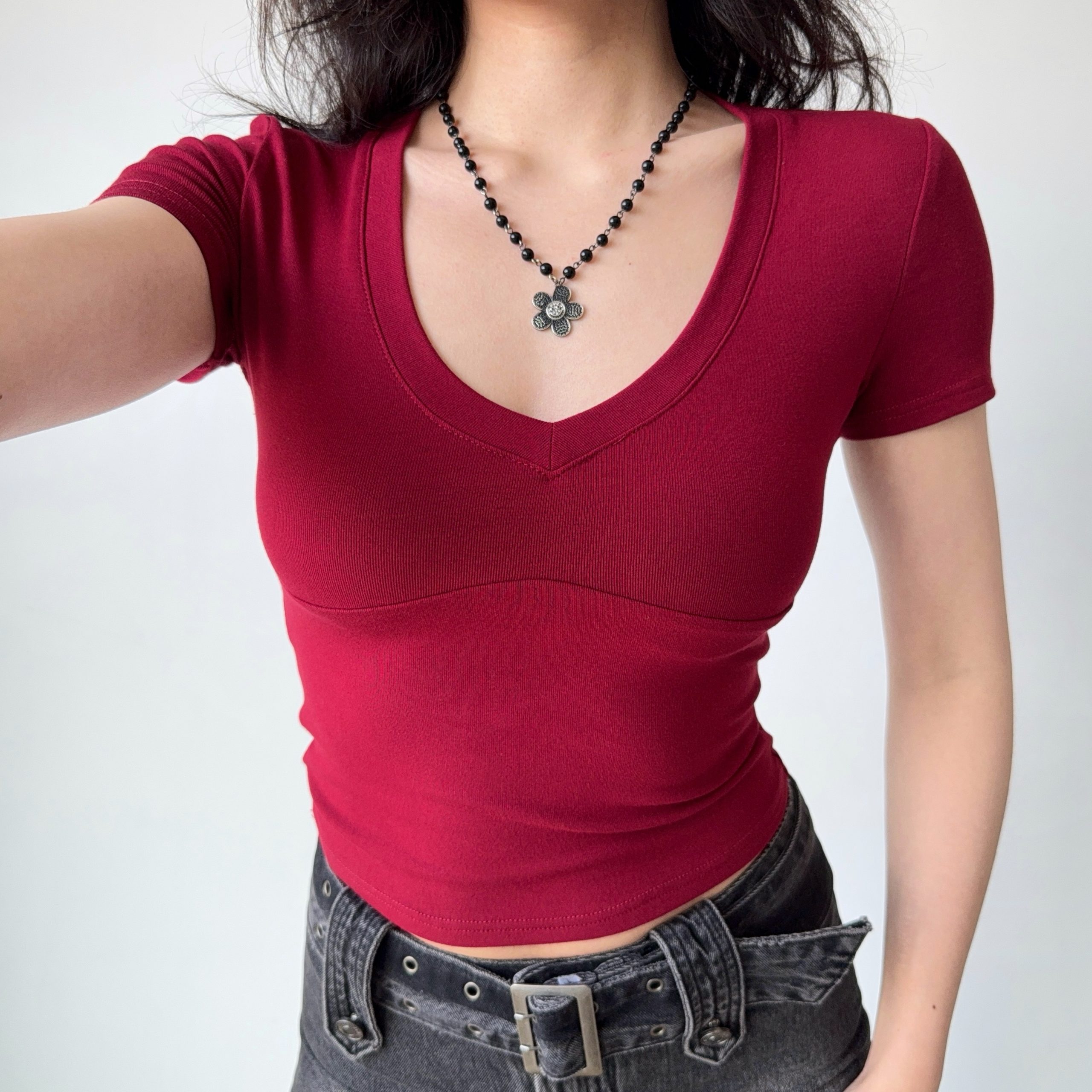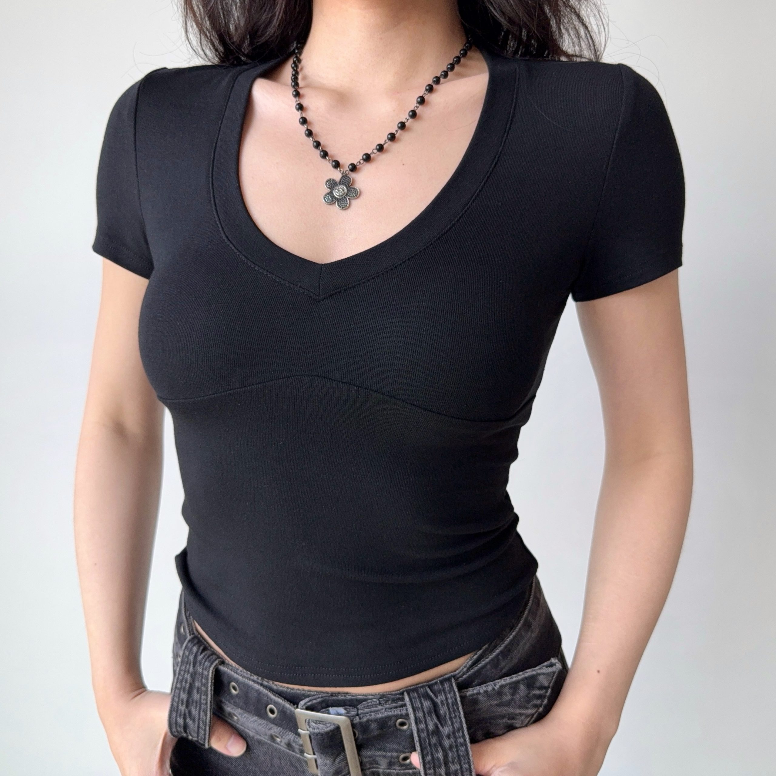 Minimalist V-neck Short Sleeve T-shirt for Women – Chic Summer Fits Top