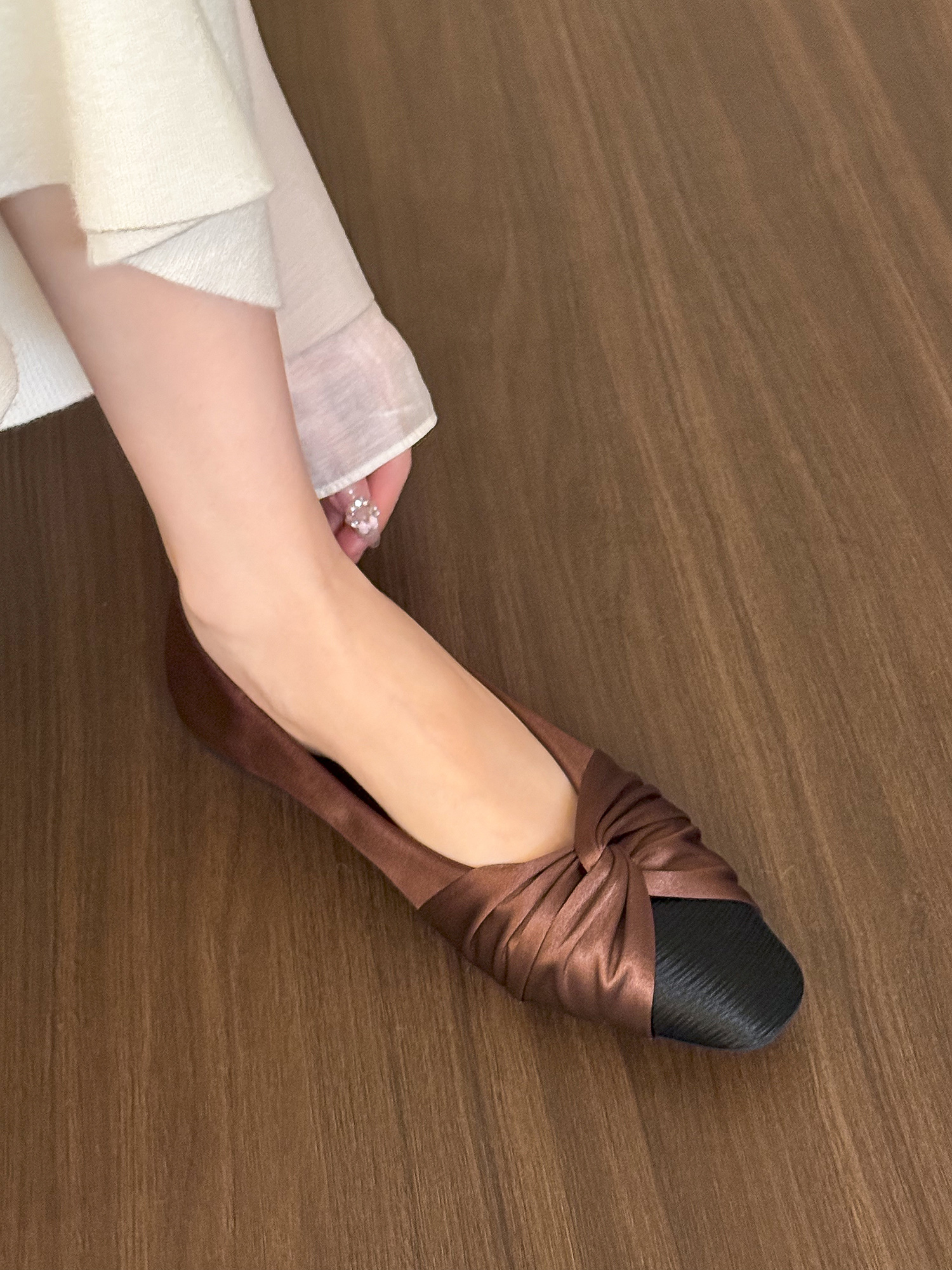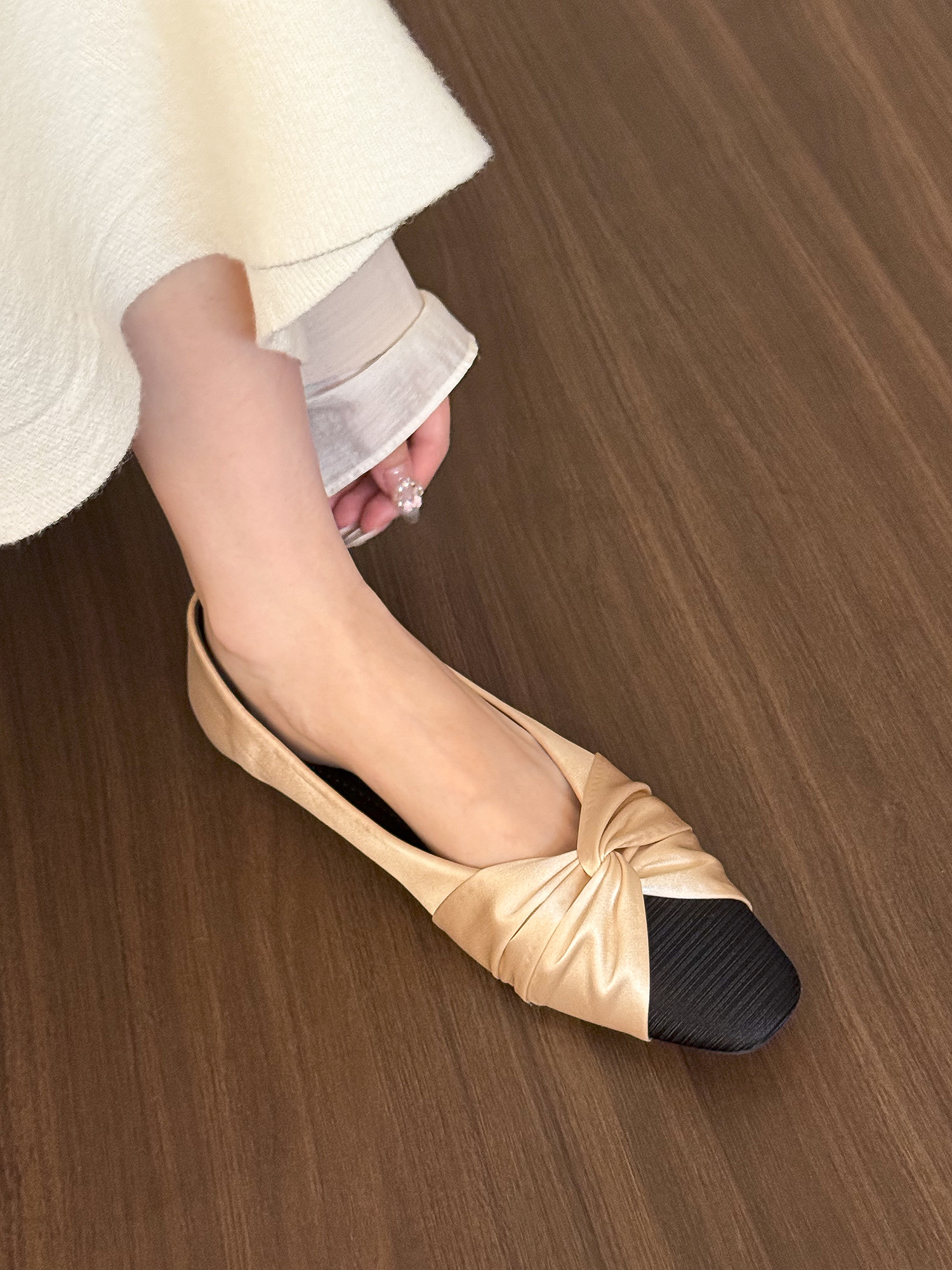 Surprisingly well-made for the price— a simple design that fits any outfit, Small touch, big difference. Glad I picked Moonlight White Satin Pleated Flat Shoes for Women – Spring Square Toe Design, Stylish and Elegant Flats up.