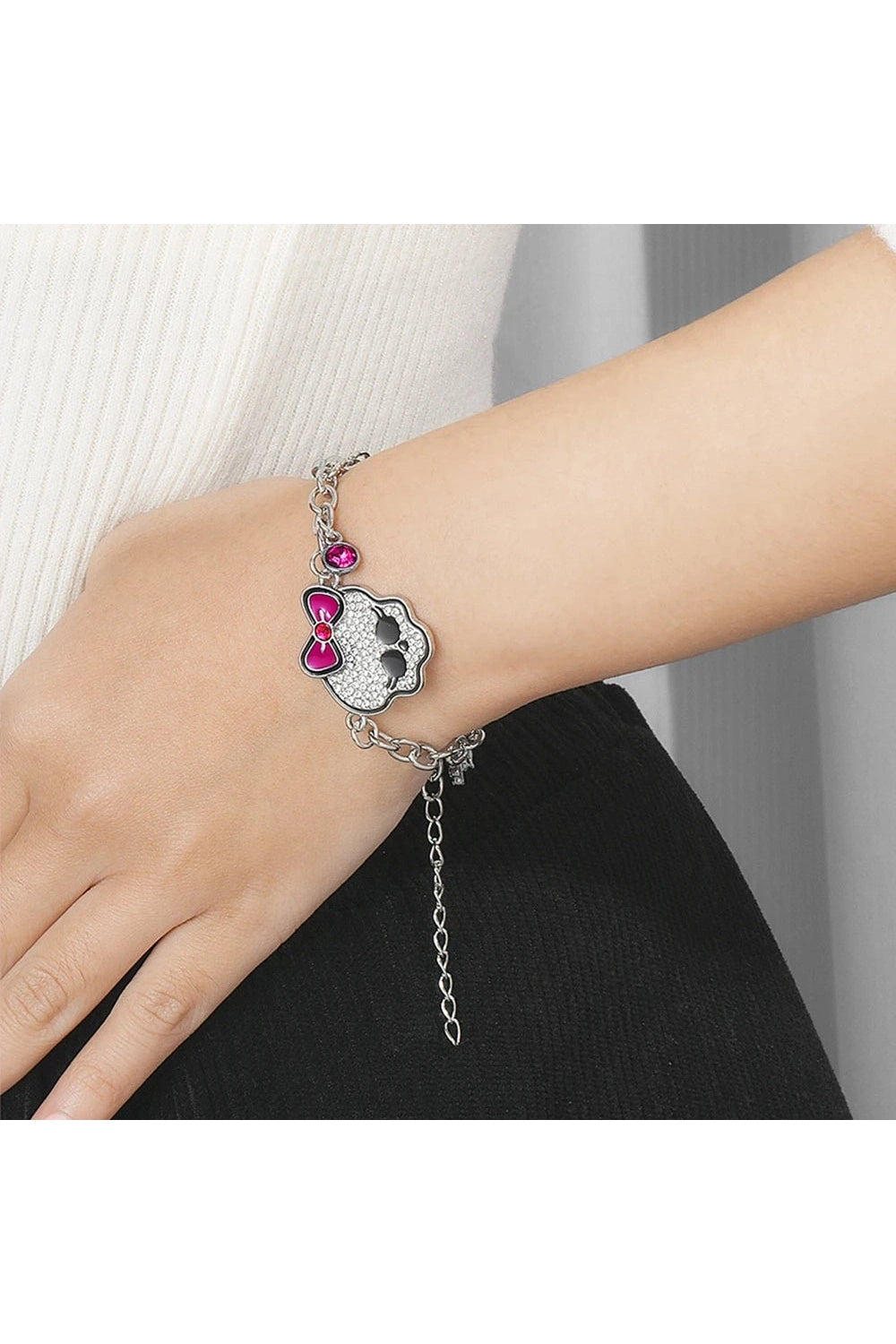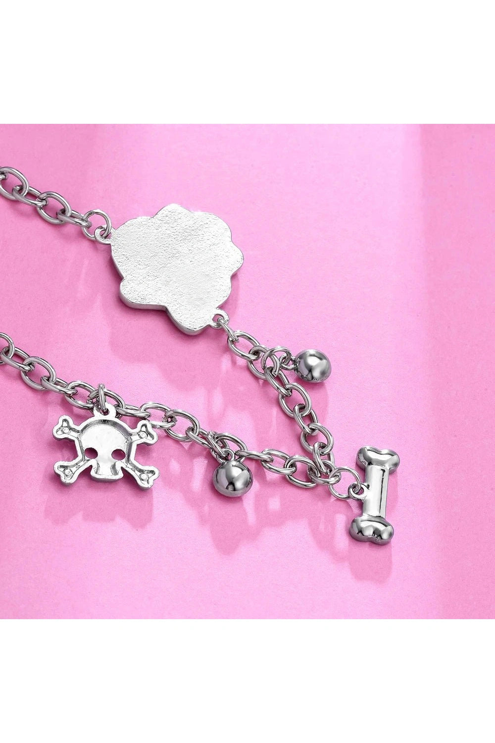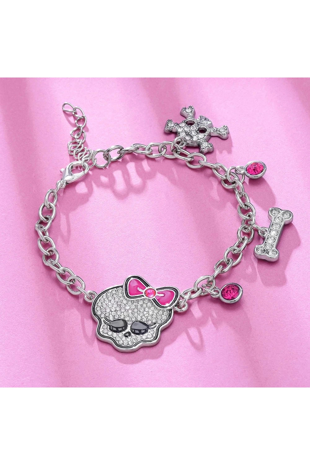 New- Alt Emo Pink Skull Charm Bracelet- Outfit Ideas