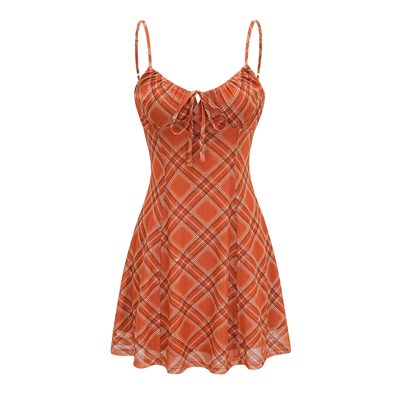 Retro Orange Plaid Camisole Dress: Perfect for Y2k Outfits and Summer Style