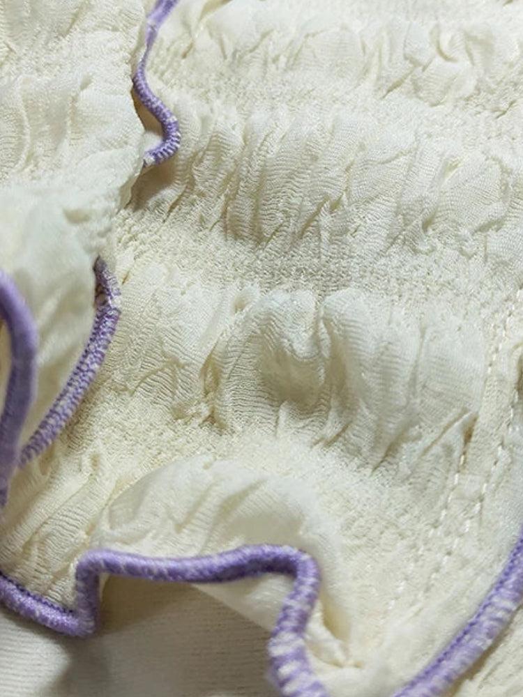 The Ruched Top offers a chic, textured look with a playful keyhole cutout. Its frilled neckline and edges bring vintage charm, making it perfect for pairing with high-waisted skirts for day-to-night elegance.