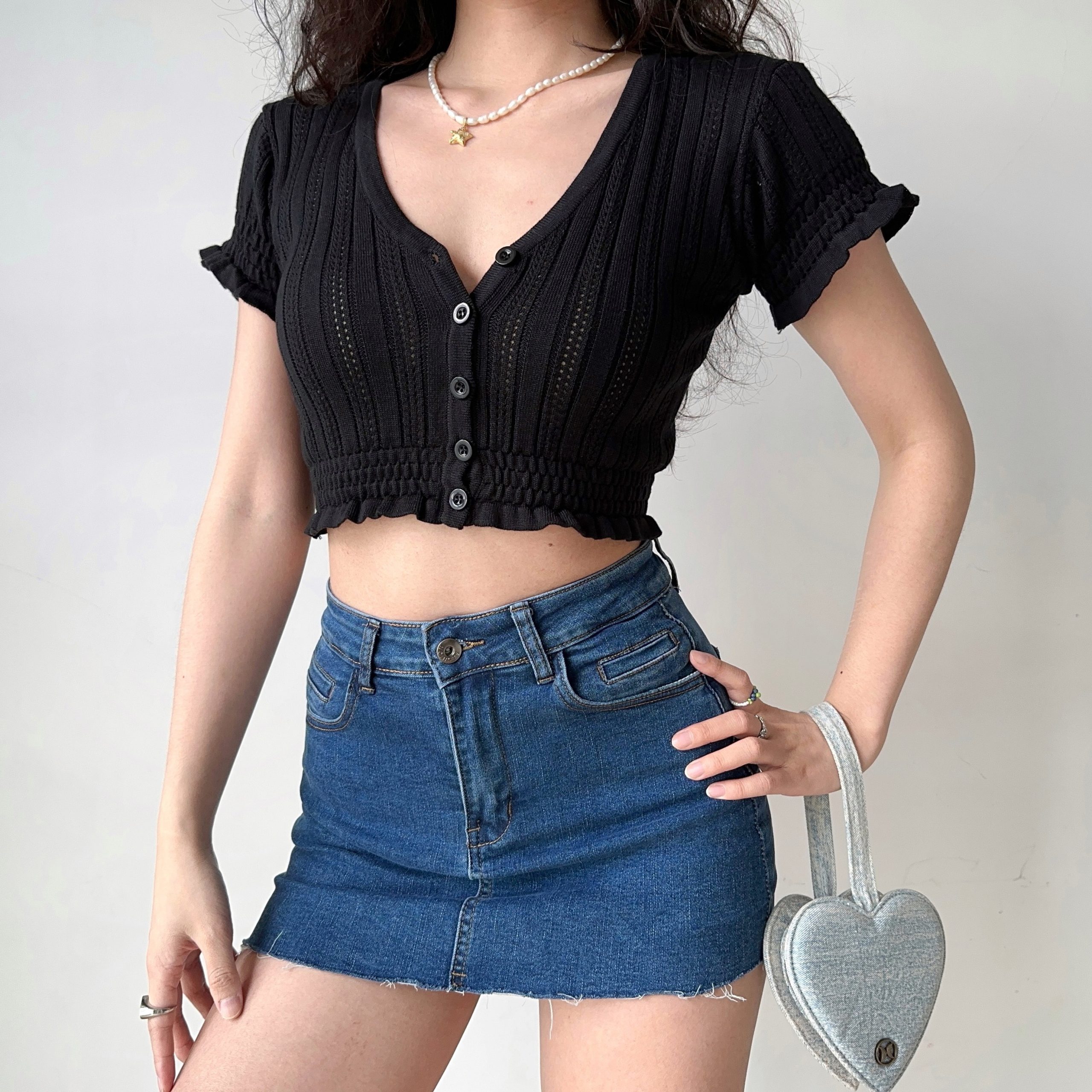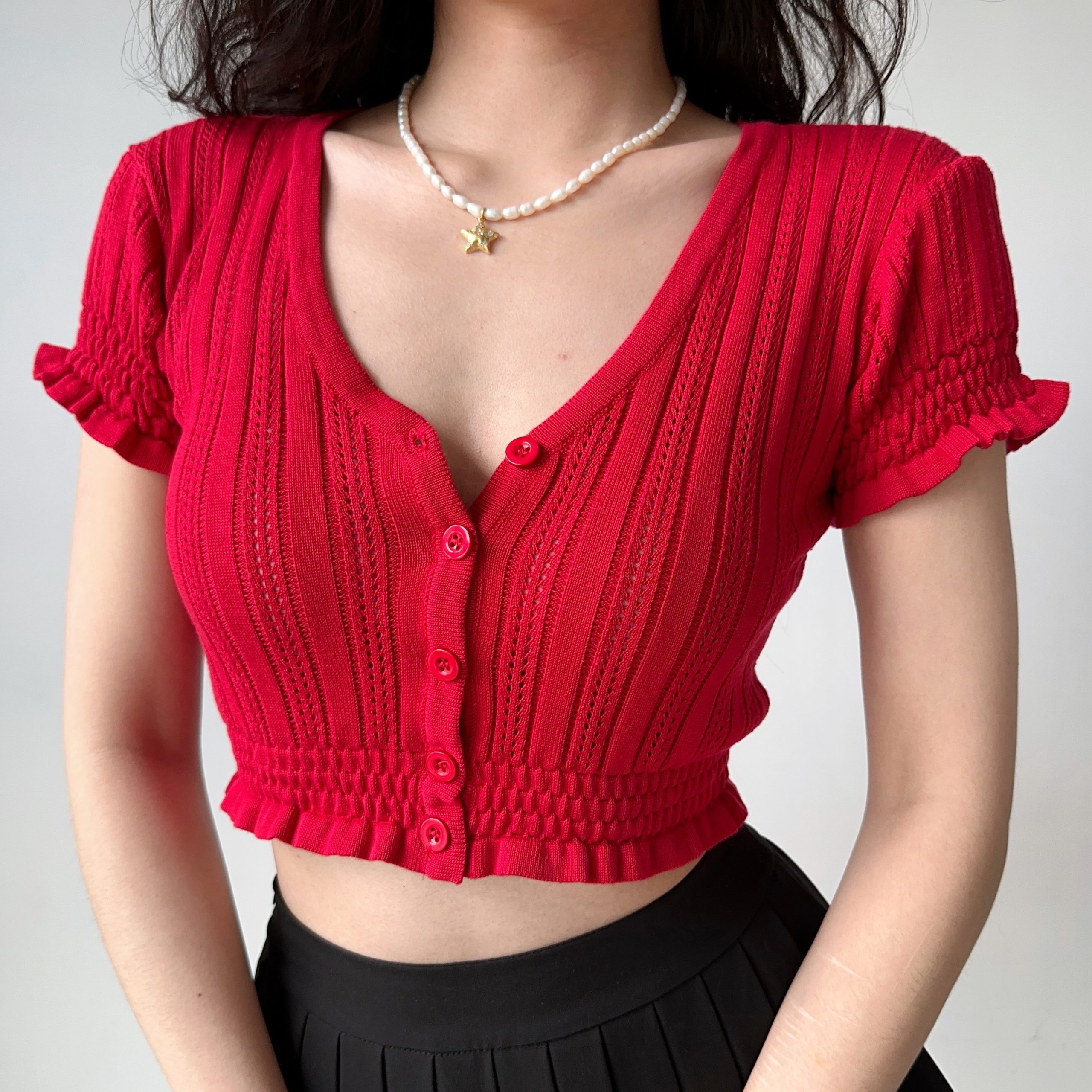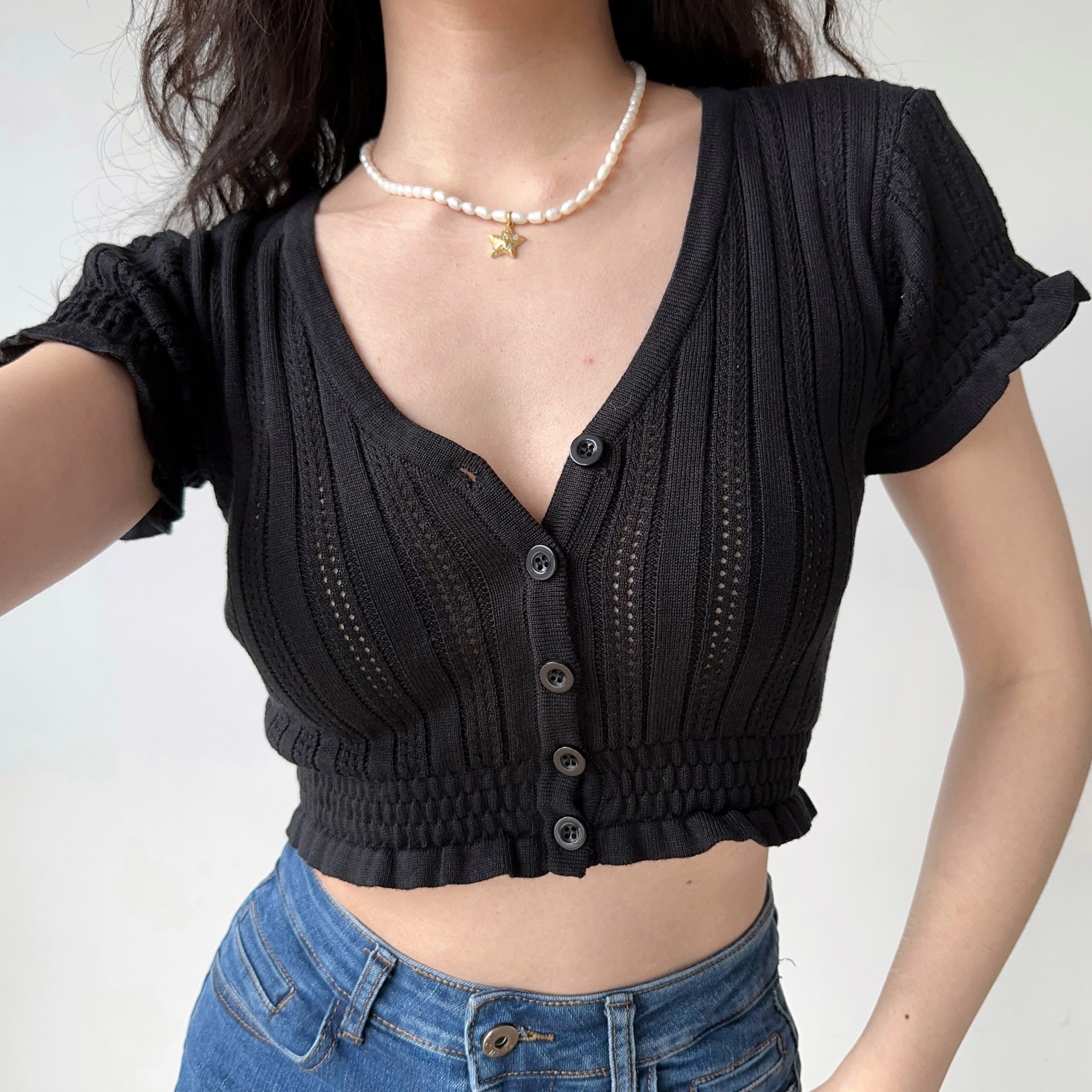 Elevate your wardrobe with our Sexy Slim-Fit V-Neck Hollow-Out Puff Sleeve Ruffled Cropped Knitted Cardigan, a perfect blend of style and comfort. Designed to flatter your figure, this chic top features a captivating V-neckline and delicate puff sleeves that add a touch of romance to any outfit. Crafted from soft, breathable fabric, it’s an essential piece for layering or wearing solo. Don’t miss out on this trendy addition—add to your cart and redefine your style today!