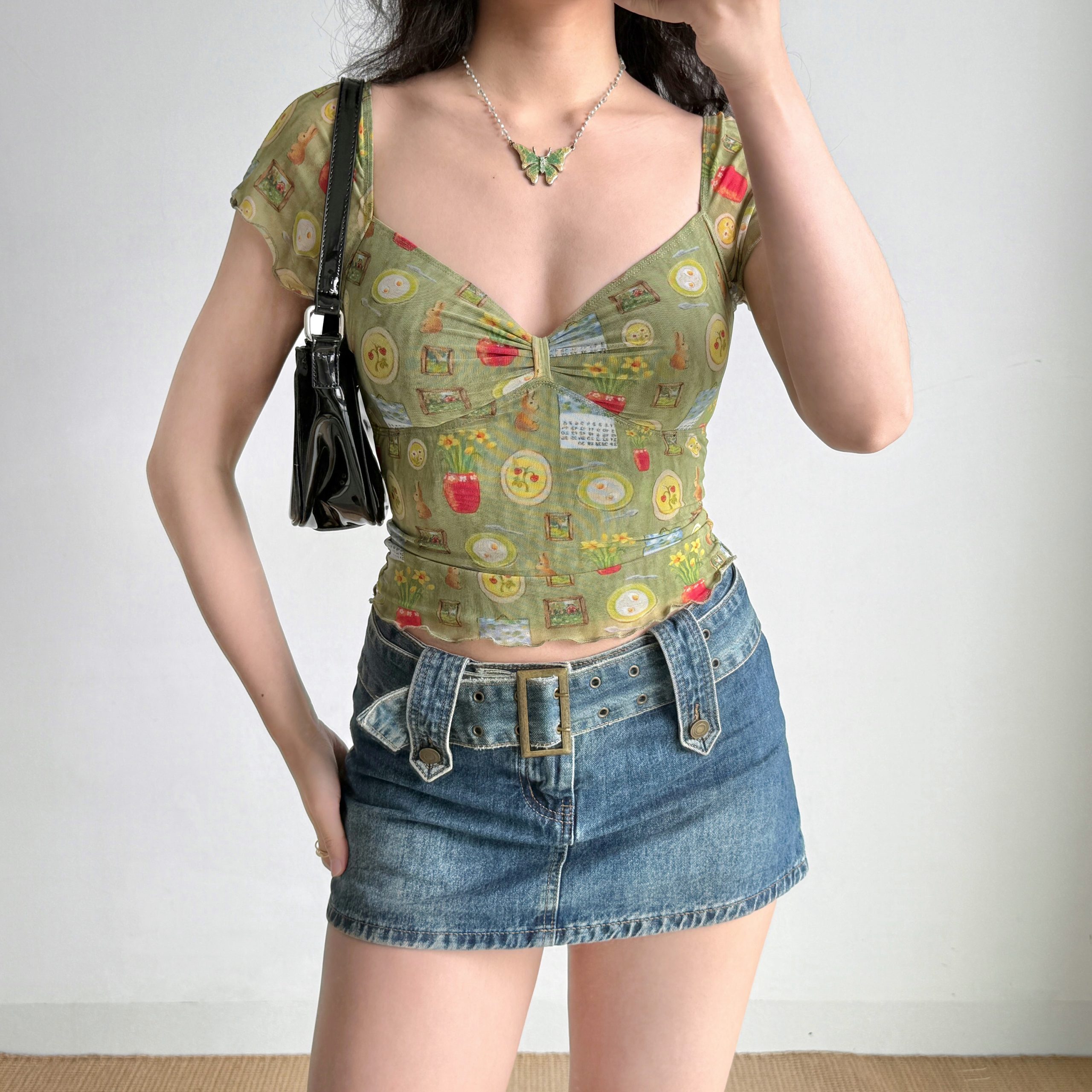 Sexy V-Neck Printed Mesh Short Sleeve T-Shirt for Women – Vintage American Style Summer Top High-quality product featuring fall fashion, vacation outfits, fall outfits women and more. Modern design that fits the latest trends. Premium materials ensure durability and comfort. Order now for special offers! Product designed with attention to every detail. Suitable for all occasions and personal styles.