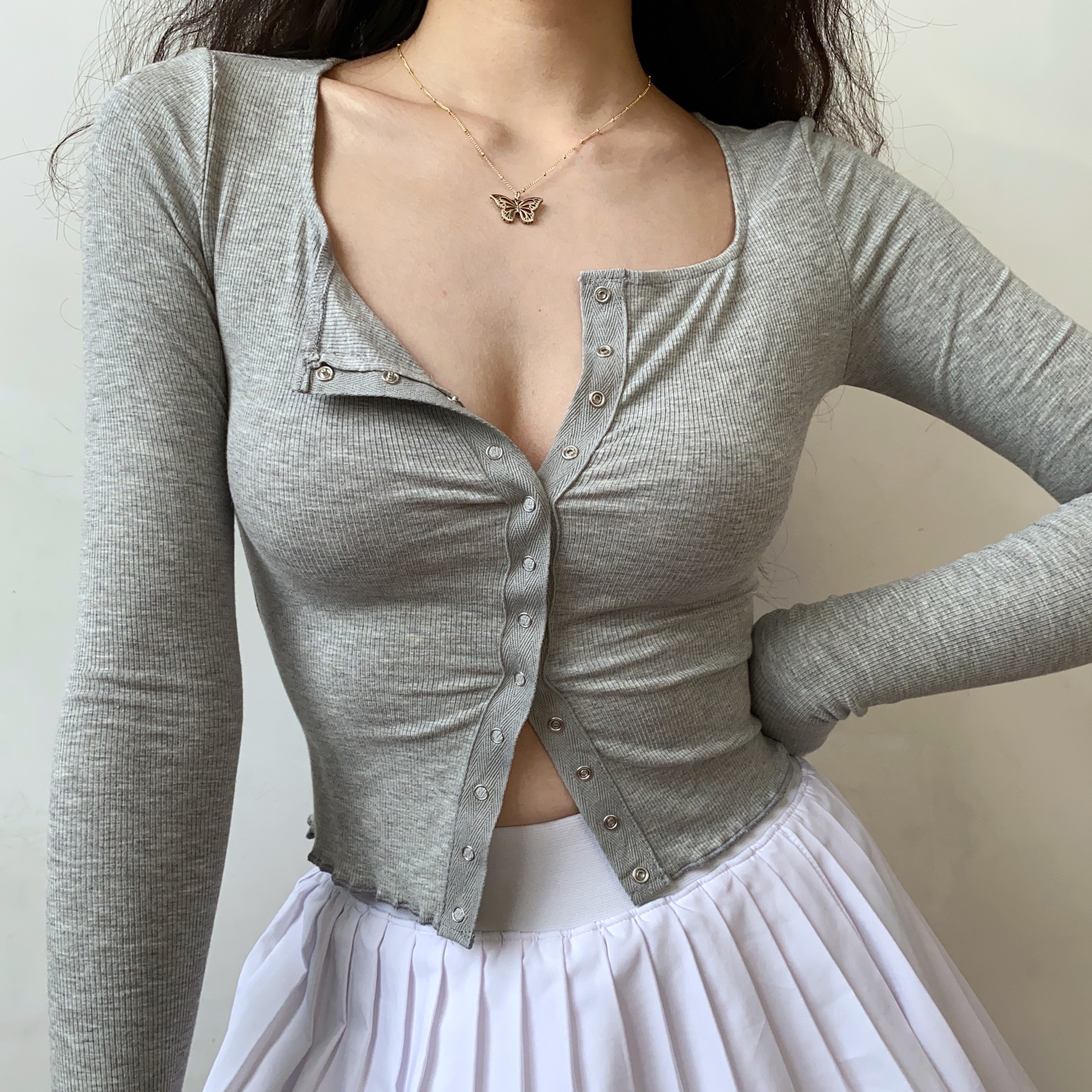 Casual Outfits Winter: Slimming Ribbed Long Sleeve T-shirt for Women