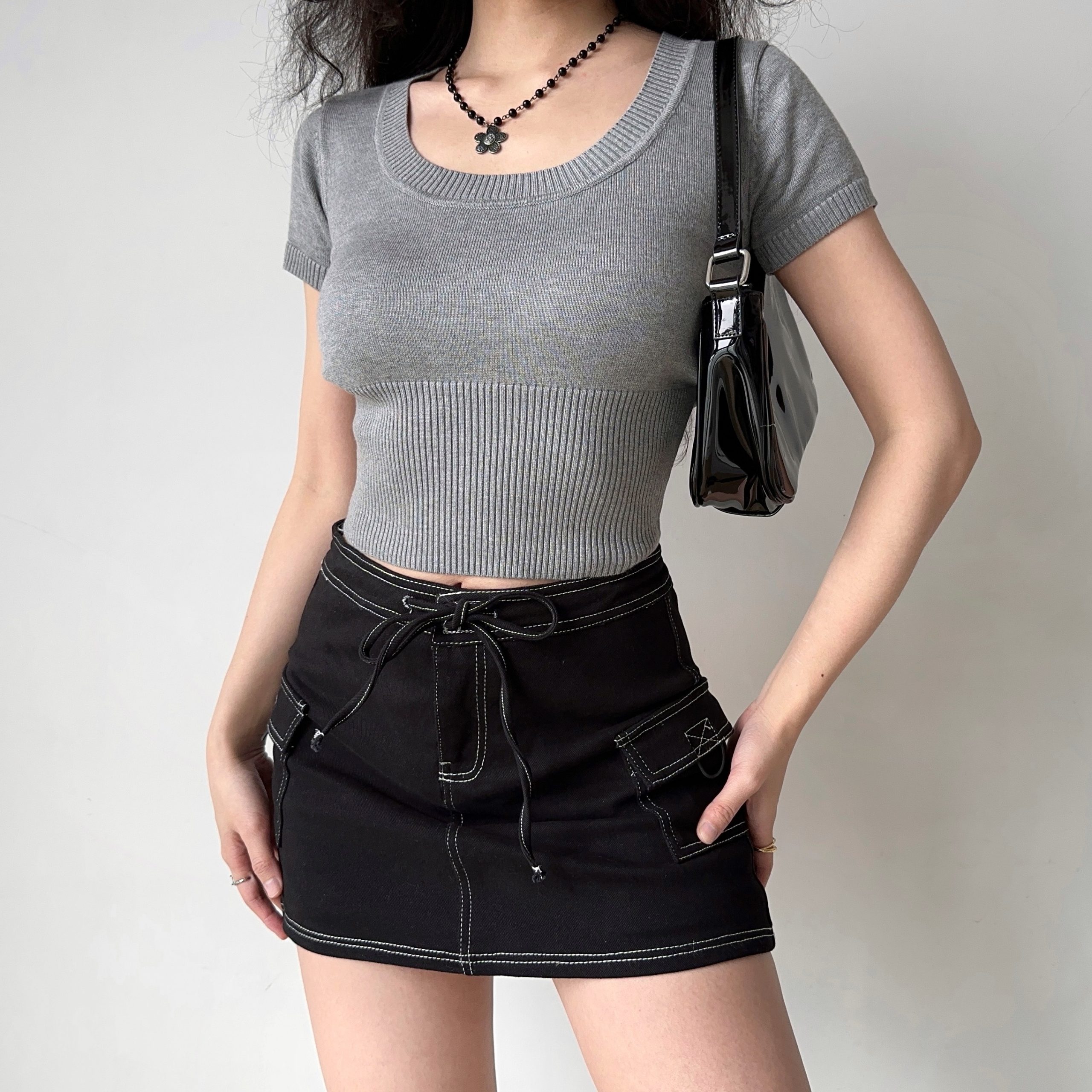 U-neck Ribbed Knit Short Sleeve T-shirt: Stylish Summer Fits for Women