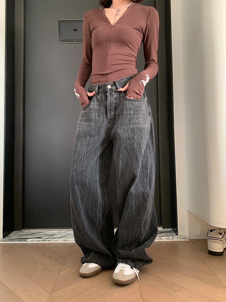 Unisex Lightning Pattern Denim Pants – Loose Casual Straigh – Spring Outfit