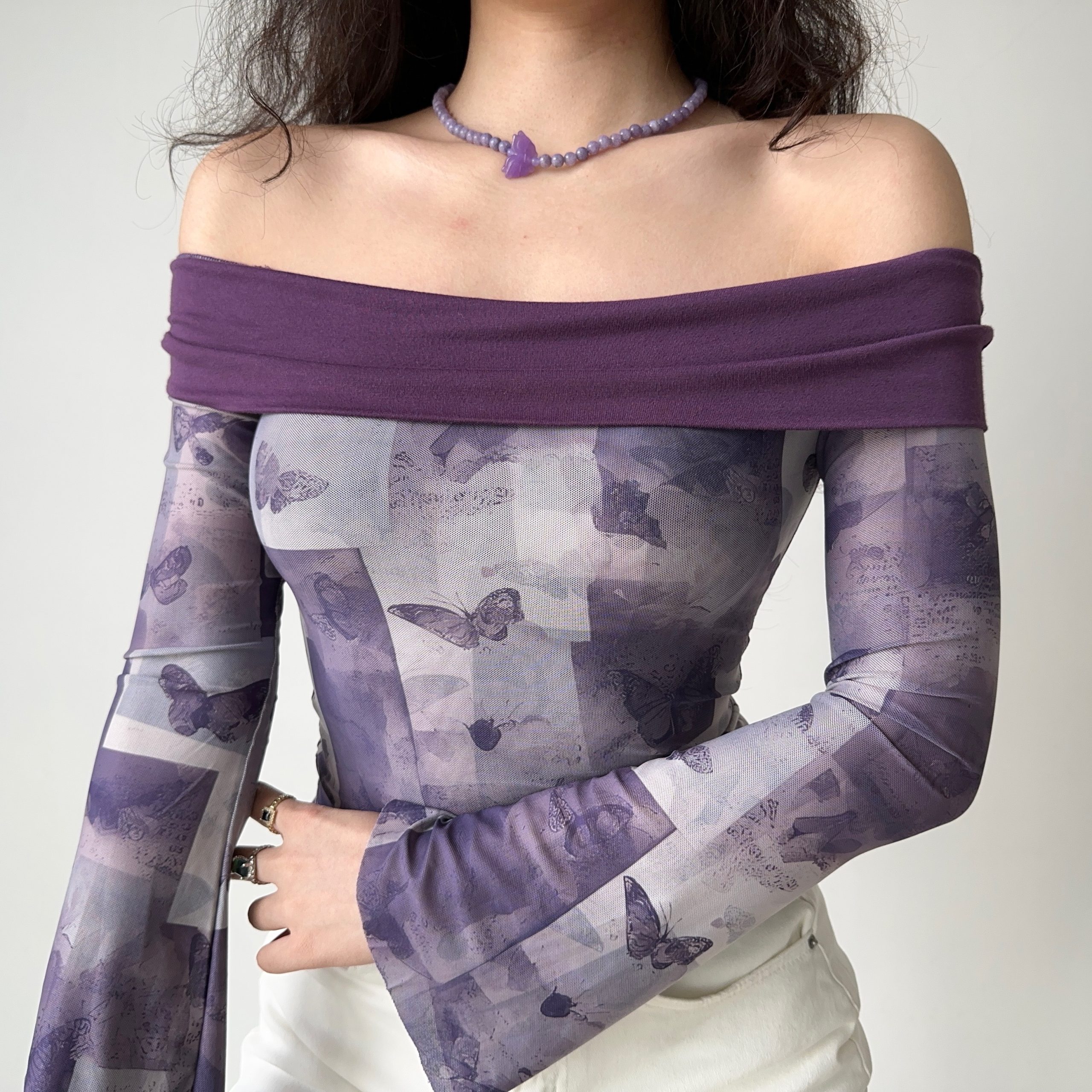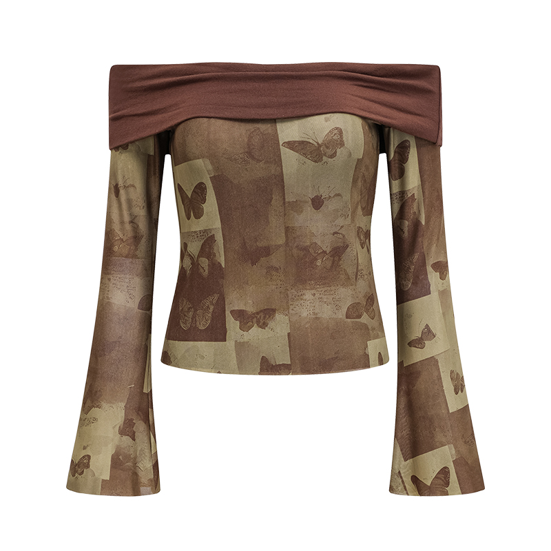 Elevate your wardrobe with our Vintage Butterfly Print One-Shoulder T-Shirt for Women, designed to capture the essence of Y2K fashion. This slim fit top features flared long sleeves that create a chic silhouette, perfect for adding a touch of whimsy to any outfit. Made for comfort and style, this eye-catching piece is ideal for both casual outings and special events. Don’t miss out on this unique addition—add it to your cart today!