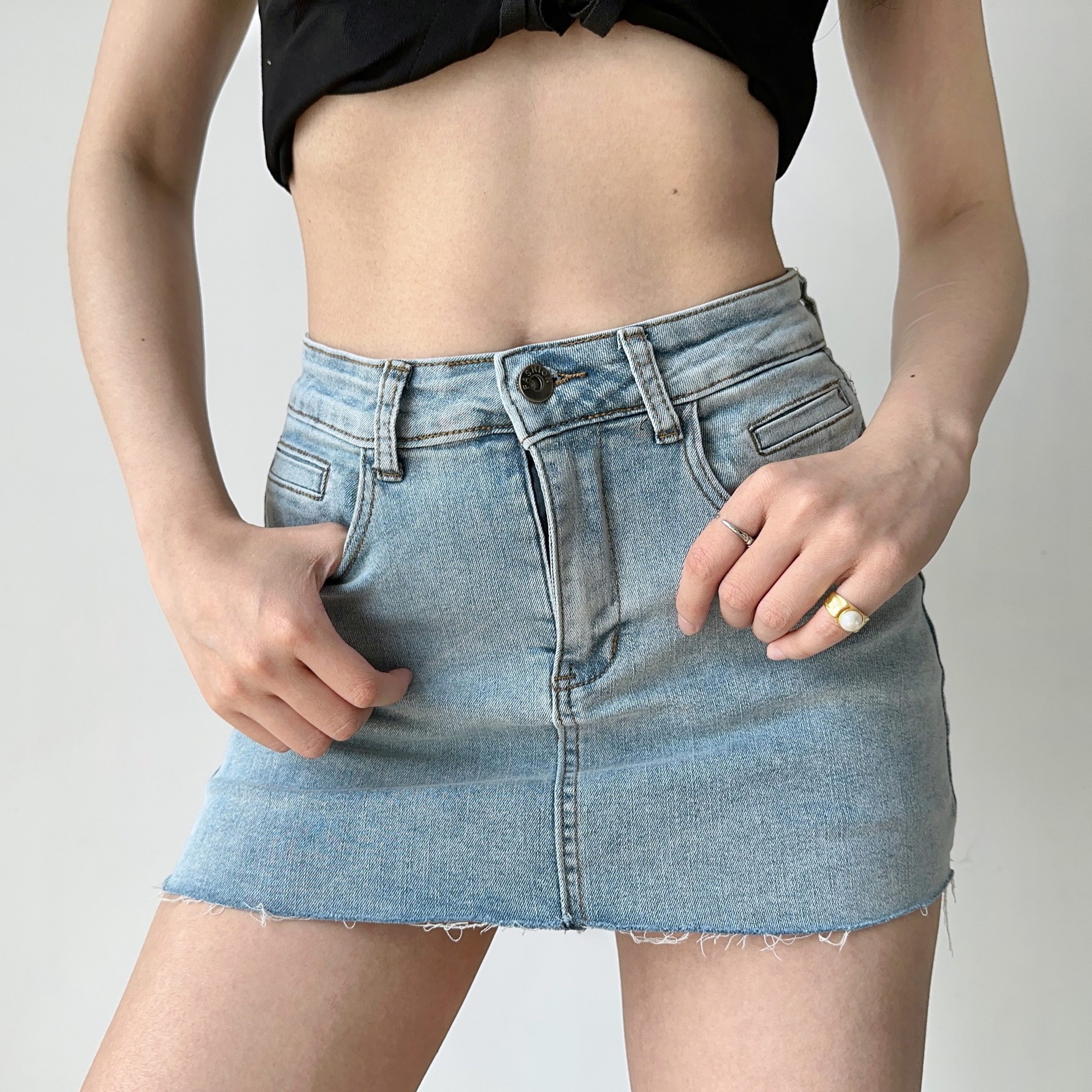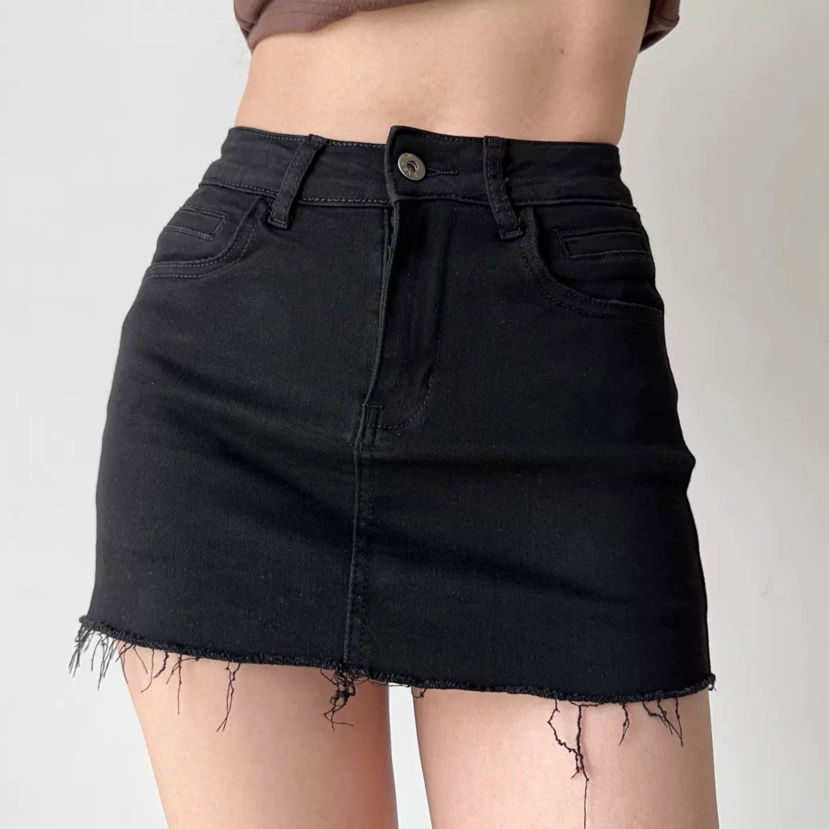 Vintage Distressed Denim Skirt Outfits – A-line High Waist Bodycon Style