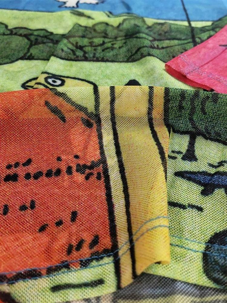 Immerse yourself in a world of whimsy with this Weirdcore Dream Mesh Top. Its vivid dreamscape print transports you to a surreal realm, while the mesh fabric offers a glimpse of reality beneath. A perfect blend of fantasy and edgy fashion.