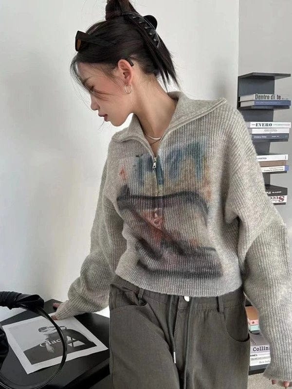 This Y2K-inspired knitted sweater features a trendy turtle neck and drop shoulder design. Perfect for a range of styles from casual to streetwear, it’s a cozy addition to your winter wardrobe, adding a cool edge to your outfit.