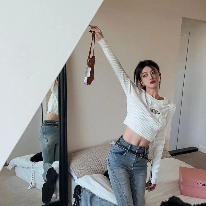 Channel Y2K grunge effortlessly with this ribbed cropped sweater. Its long sleeves and alluring plunge detail on the chest make it a bold yet casual statement piece. Perfect for teens or anyone embracing the Y2K resurgence, pair it with high-waisted jeans or a mini skirt for an edgy, casual outfit.