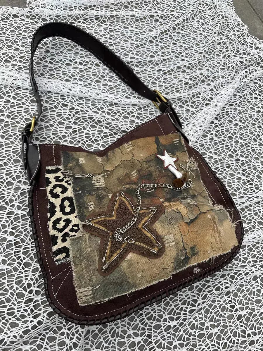 Y2k Outfits: Stylish Star Patch Distressed Bag for Trendy Looks