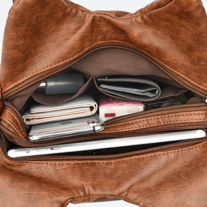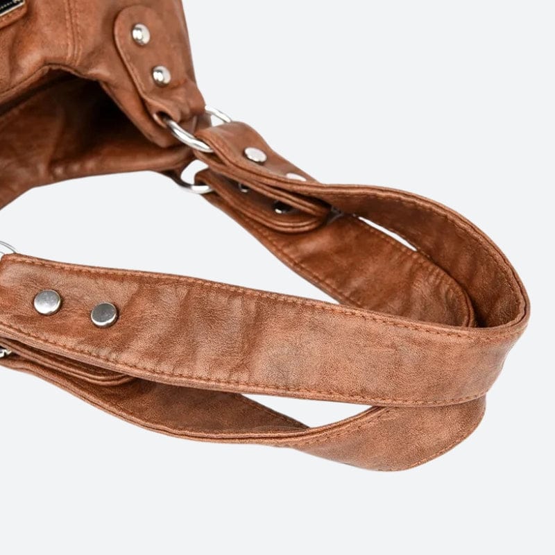 This Y2K vintage bag brings back early 2000s nostalgia with its edgy design and bold details. The glossy faux leather, chunky zippers, and metal accents create a statement look, making it the perfect accessory for retro streetwear styles.