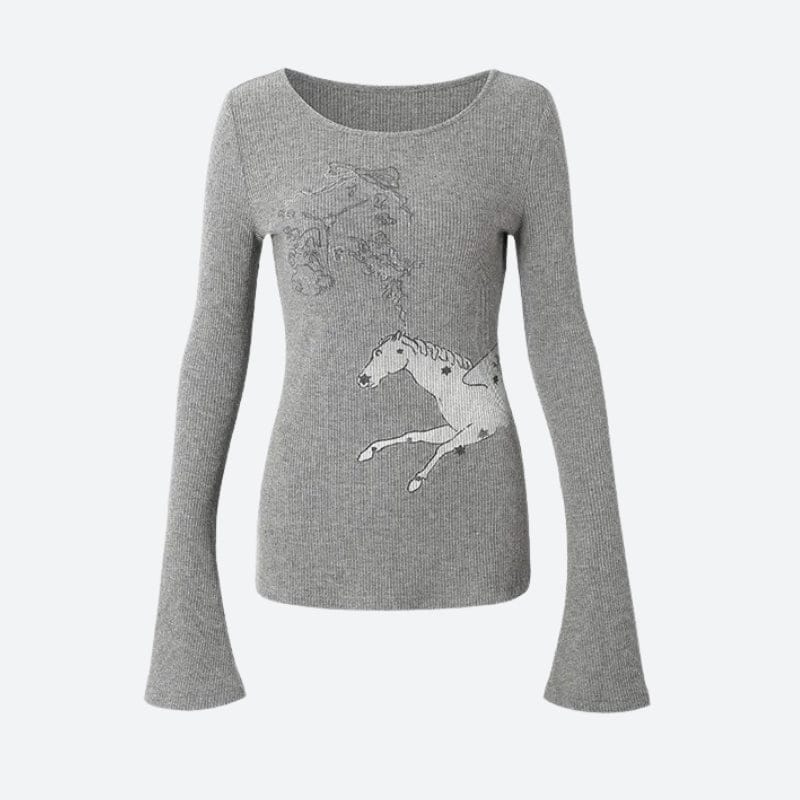 Stylish Y2k Outfits: White Horse Ribbed Top for a Trendy Look